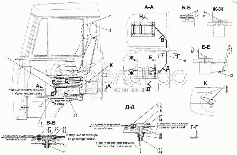 Каталог запасных частей к технике: МЗКТ-8006. Установка и пневмопитание сидений