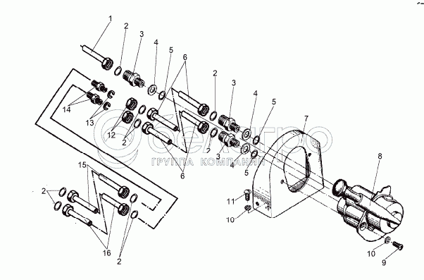 Каталог запасных частей к технике: МЗКТ-8006. Установка крана стояночного тормоза