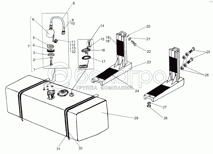 Каталог запасных частей к технике: МЗКТ-8006. Установка топливного бака (6923-1101010)