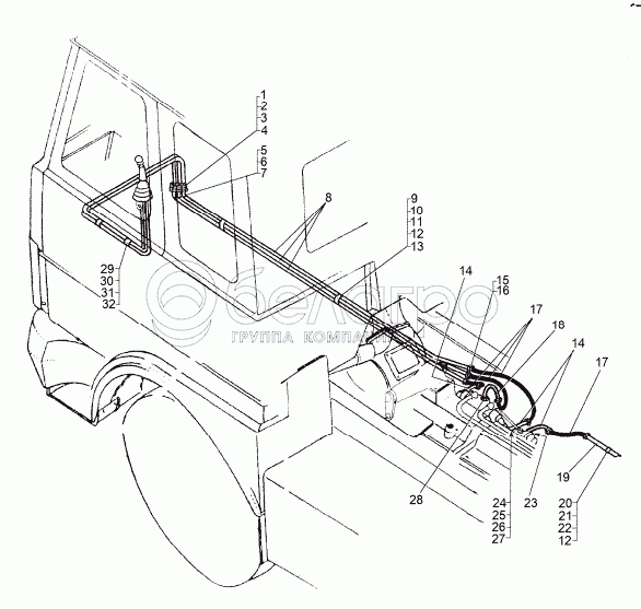 Каталог запасных частей к технике: МЗКТ-8006. Установка трубопроводов управления 8006-1700022