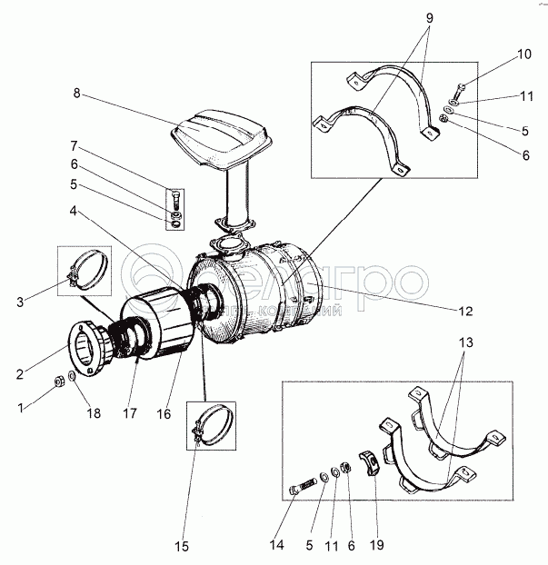 Каталог запасных частей к технике: МЗКТ-8006. Установка воздухоочистителя (238Б-1ТКР11)