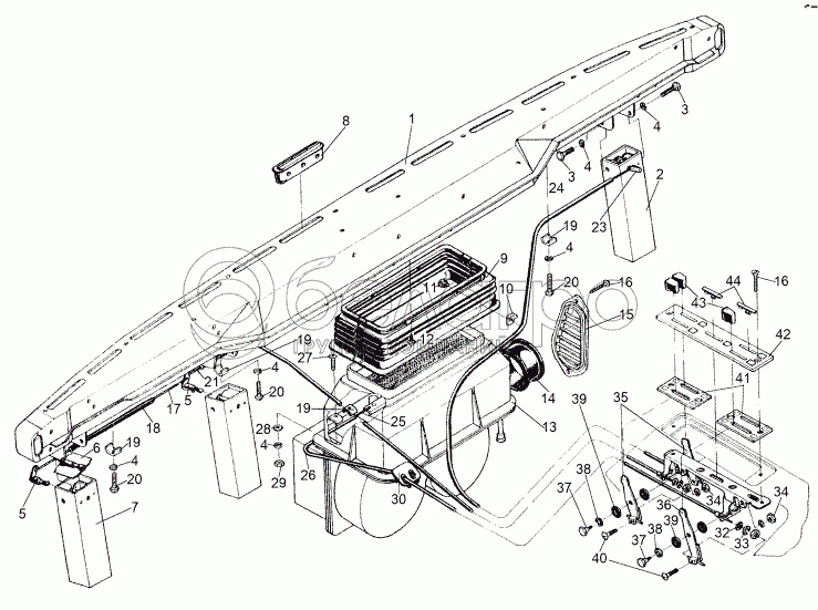 Каталог запасных частей к технике: МЗКТ-8006. Установка воздушных заслонок и отопителя кабины