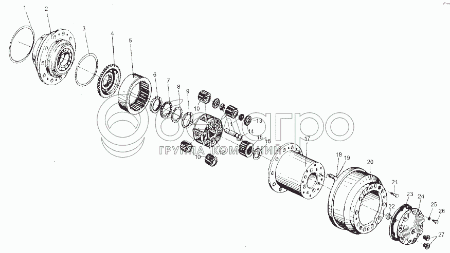 Каталог запасных частей к технике: МЗКТ-80211. Детали колесной передачи и ступица с барабаном