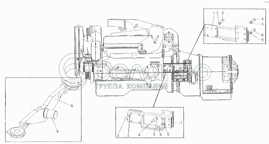 Каталог запасных частей к технике: МЗКТ-80211. Двигатель в состоянии установки на шасси