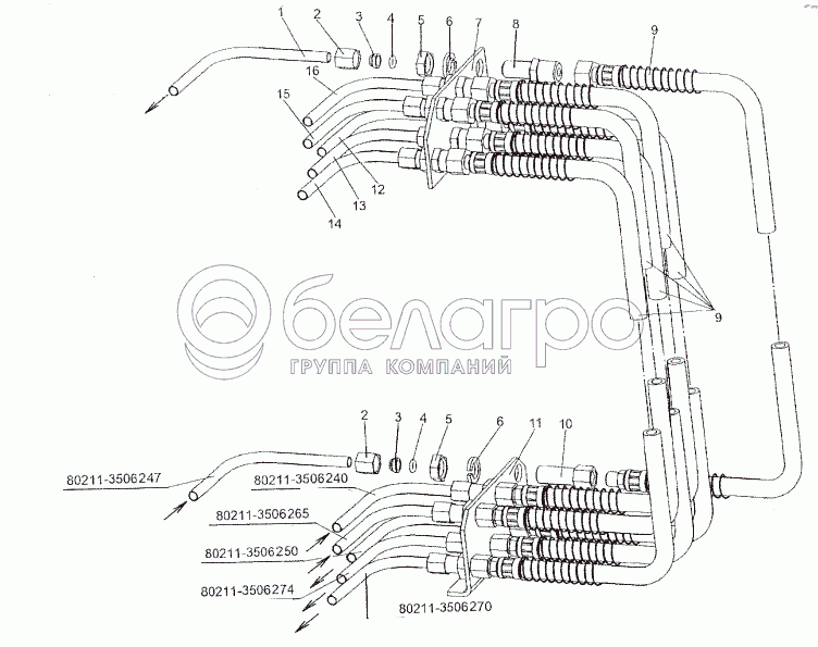 Каталог запасных частей к технике: МЗКТ-80211. Присоединительная арматура от рамы к кабине