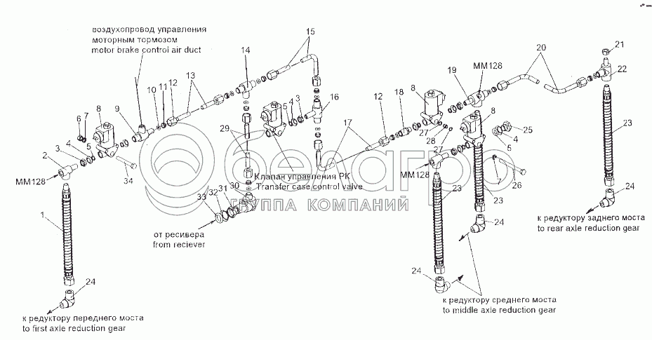 Каталог запасных частей к технике: МЗКТ-80211. Привод управления блокировкой дифференциалов 80211-2328005