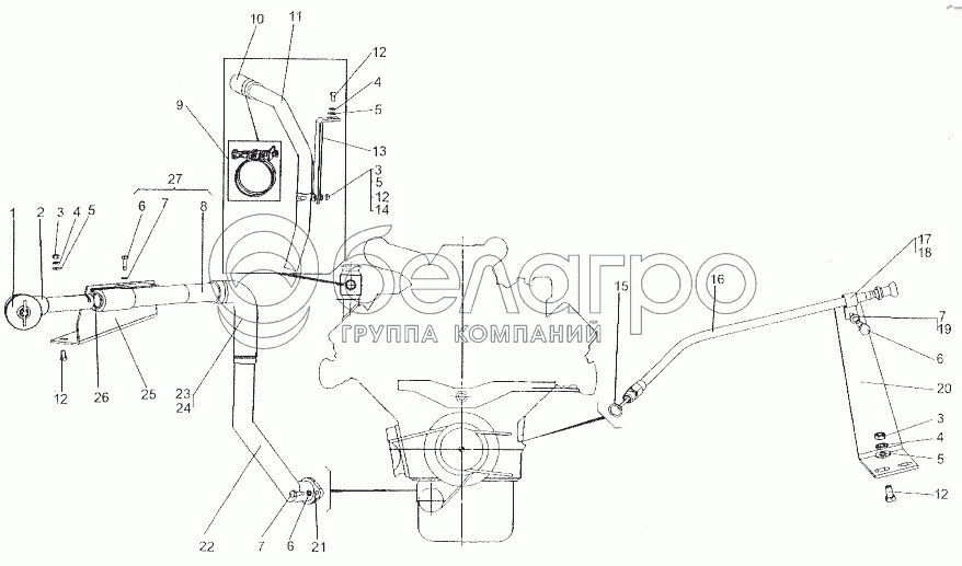 Каталог запасных частей к технике: МЗКТ-80211. Установка агрегатов системы смазки двигателя