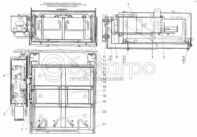 Каталог запасных частей к технике: МЗКТ-80211. Установка аккумуляторных батарей и контейнера