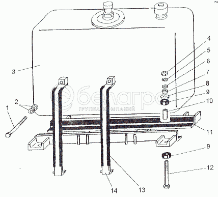 Каталог запасных частей к технике: МЗКТ-80211. Установка бака