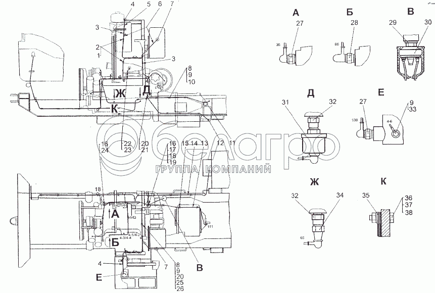 Каталог запасных частей к технике: МЗКТ-80211. Установка электрооборудования двигателя