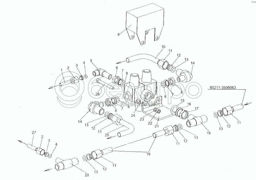 Каталог запасных частей к технике: МЗКТ-80211. Установка клапана защитного