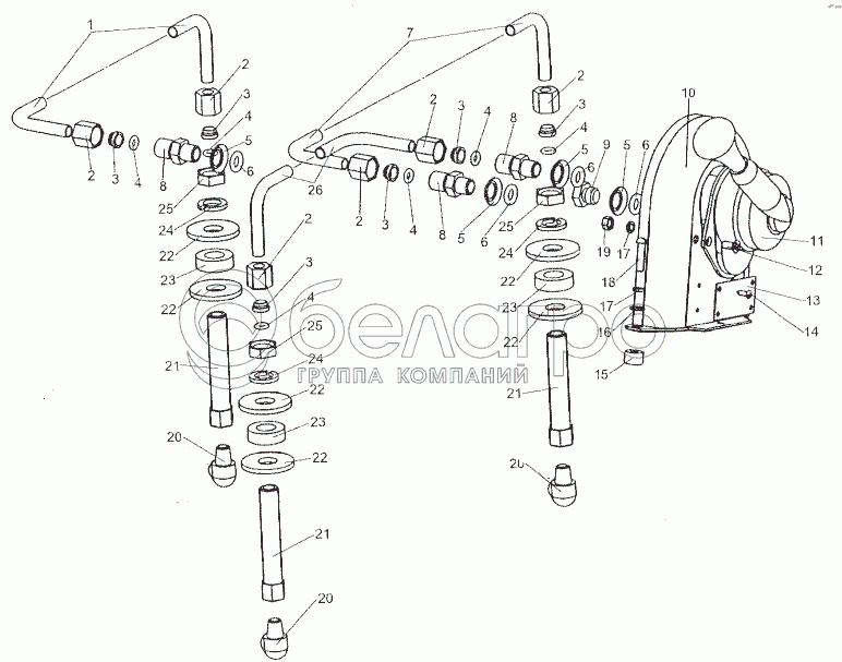 Каталог запасных частей к технике: МЗКТ-80211. Установка крана стояночного тормоза