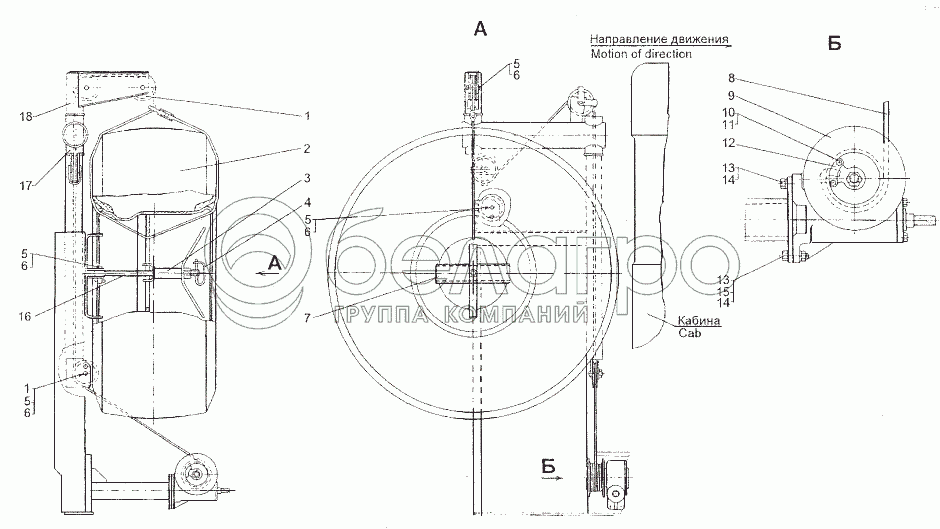 Каталог запасных частей к технике: МЗКТ-80211. Установка подъемника запасного колеса