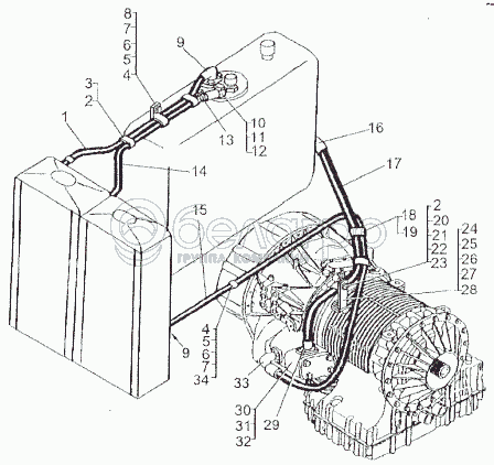 Каталог запасных частей к технике: МЗКТ-80211. Установка трубопроводов