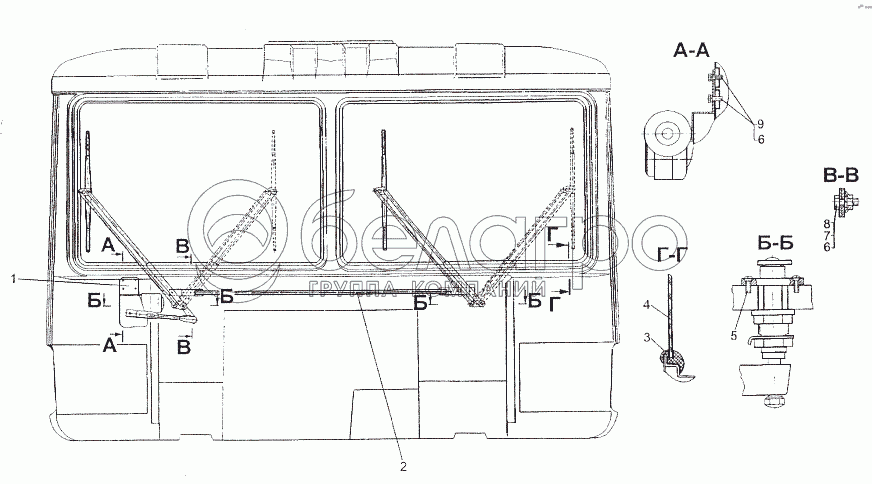 Каталог запасных частей к технике: МЗКТ-80211. Установка ветровых окон и стеклоочистителя