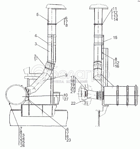 Каталог запасных частей к технике: МЗКТ-80211. Установка воздухоочистителя
