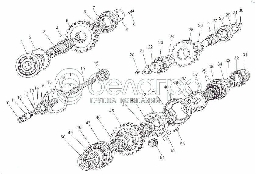 Каталог запасных частей к технике: МЗКТ-80211. Валы и шестерни раздаточной коробки